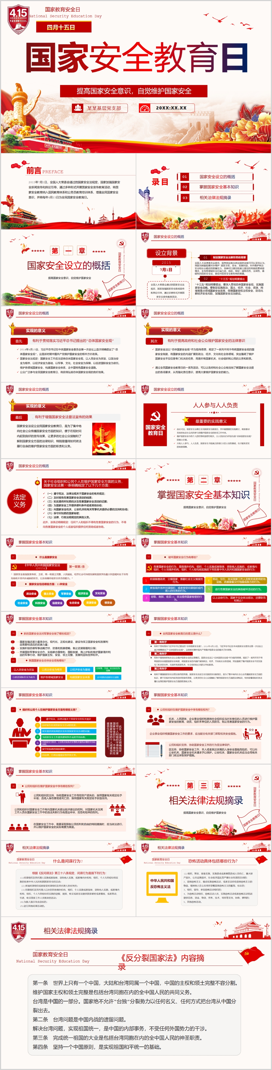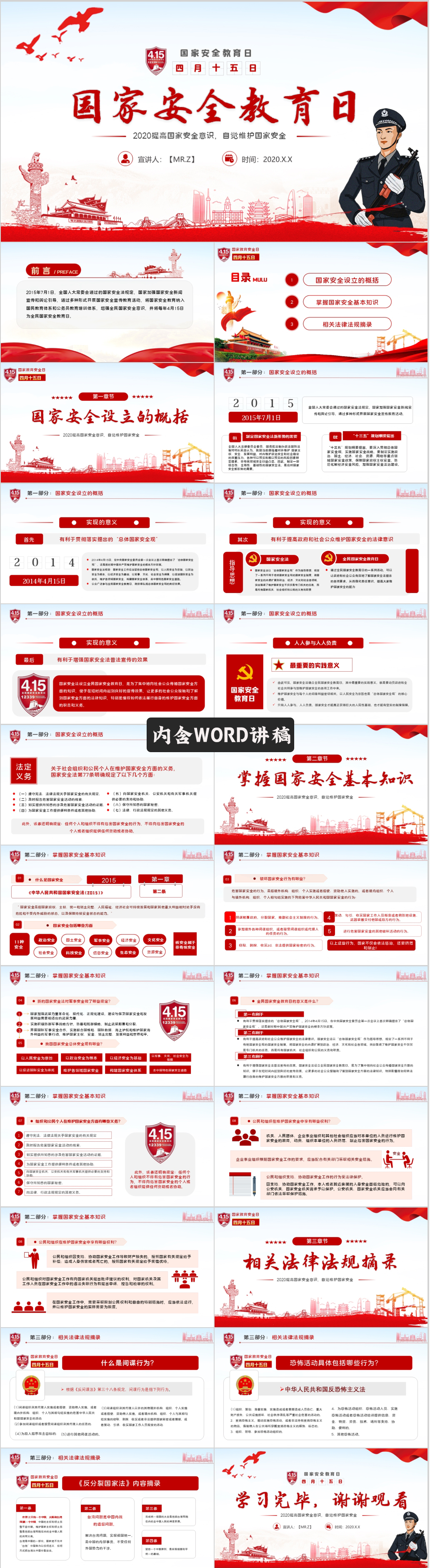 2023年国家安全教育日党课党政普法宣传PPT模版(内含WORD演讲稿)