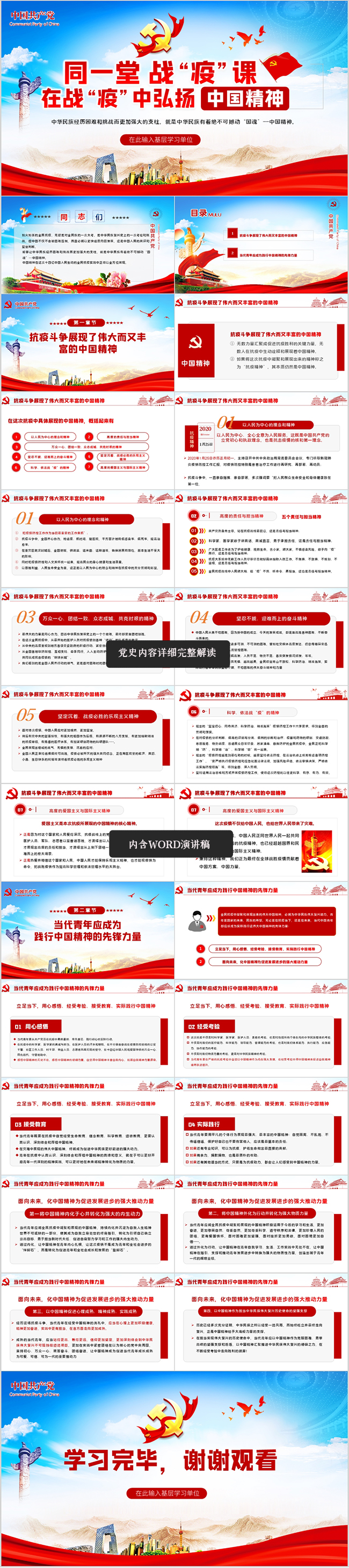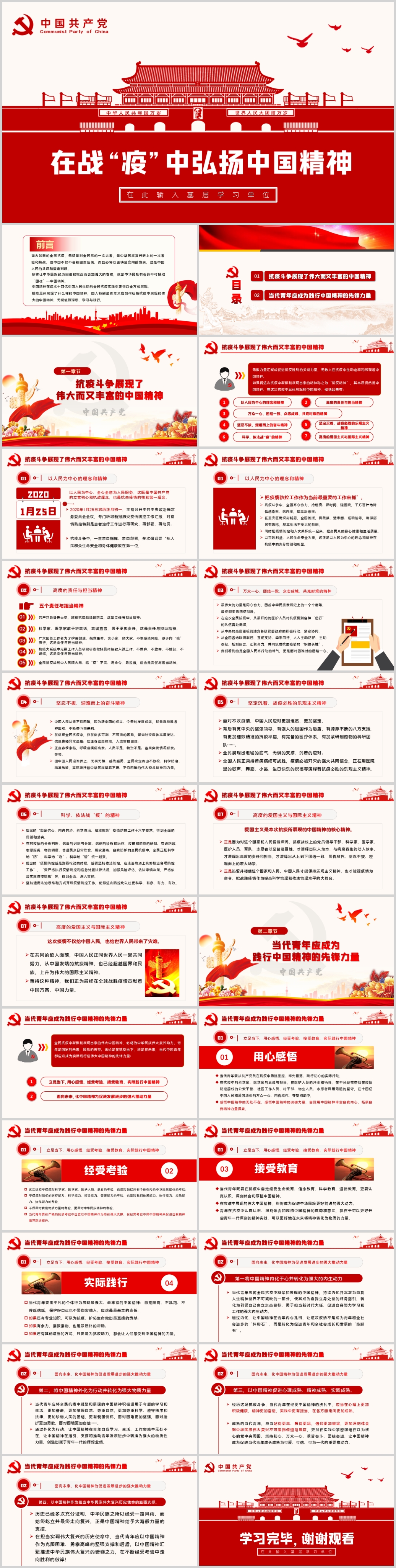 在战“疫”中弘扬中国精神党建党课PPT(内含WORD演讲稿)
