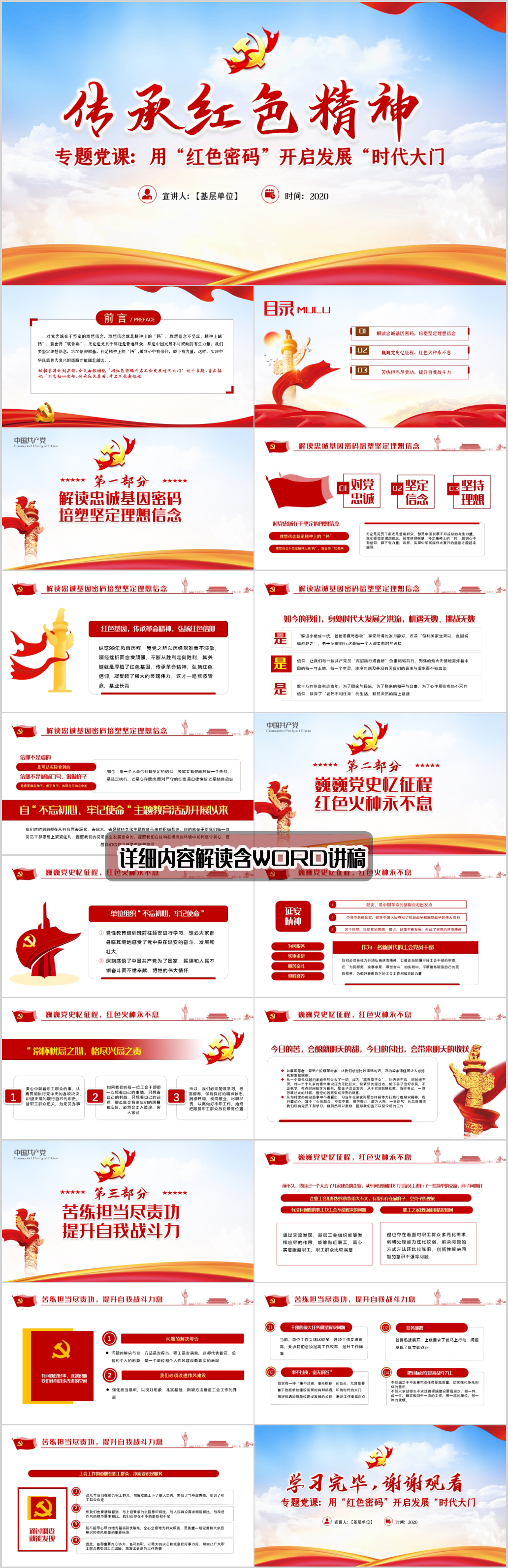 学习不忘初心牢记使命传承红色基因精神专题党课ppt模板(内含WORD演讲稿)
