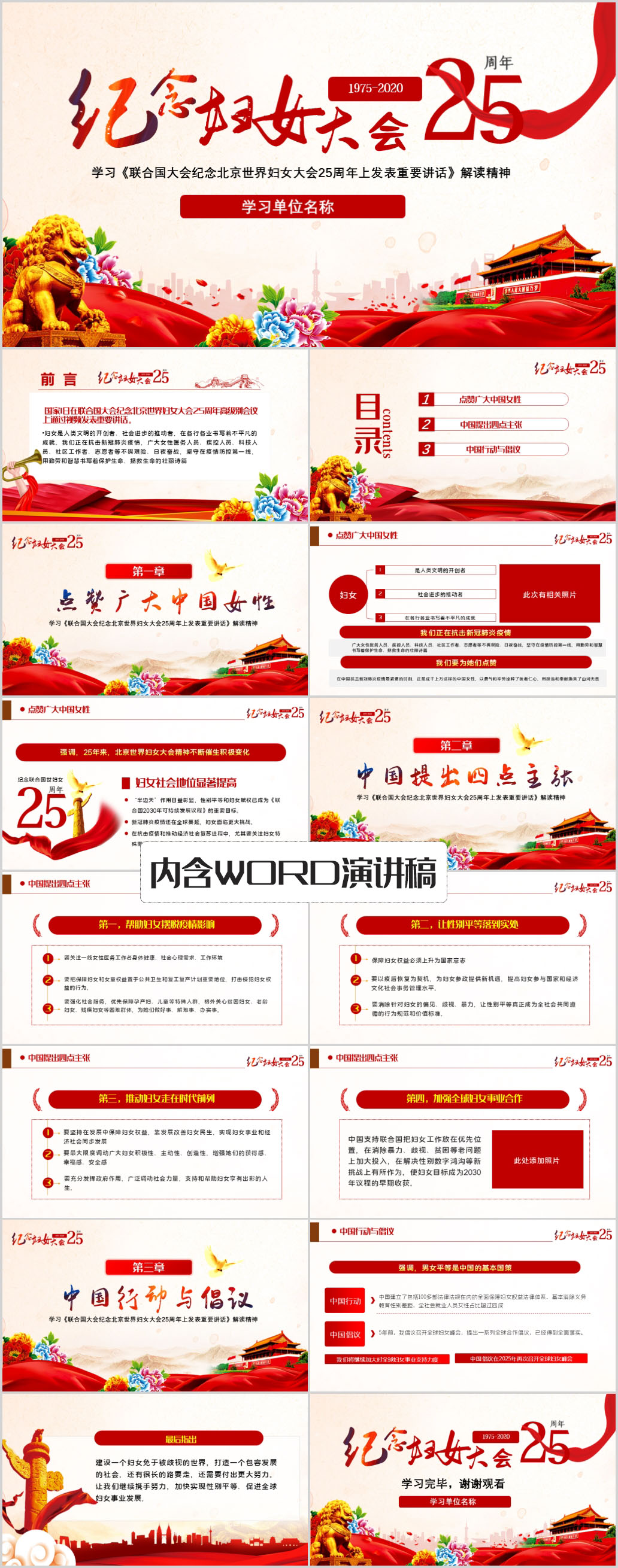 纪念北京世界妇女大会25周年党课PPT(内含WORD演讲稿)