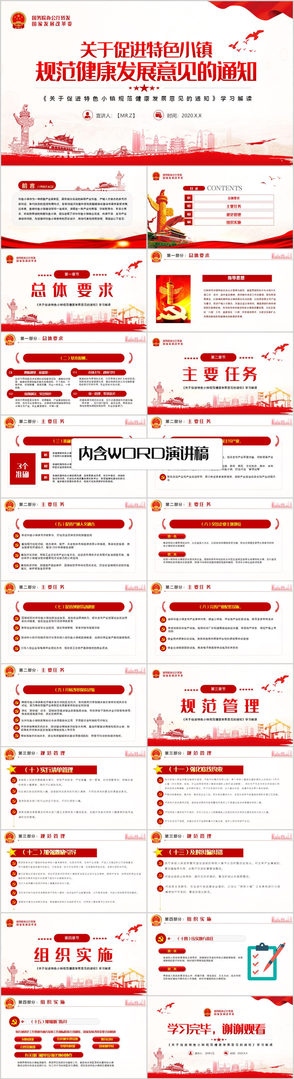 关于促进特色小镇规范健康发展意见的通知PPT模板(内含WORD演讲稿)