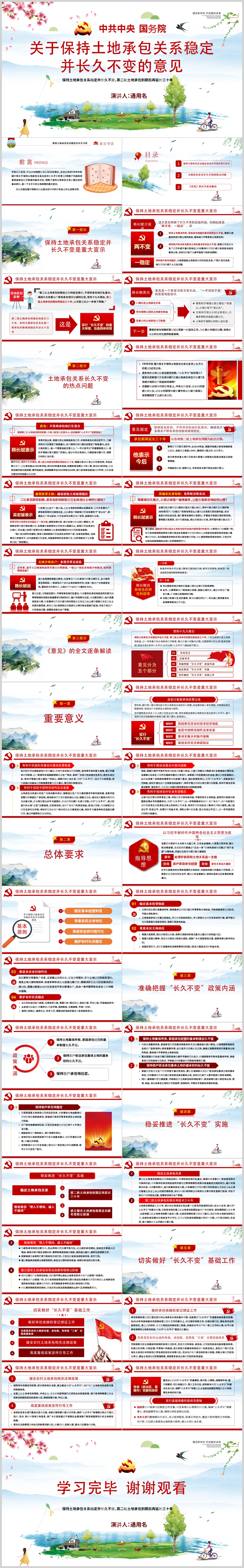 关于保持土地承包关系稳定并长久不变的意见学习解读PPT(内含WORD演讲稿)