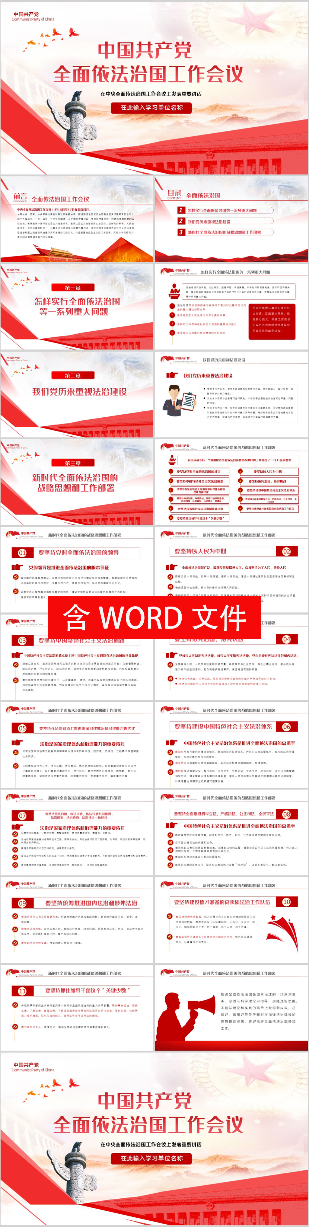 大气全面依法治国工作会议重要讲话精神党建党课PPT模版