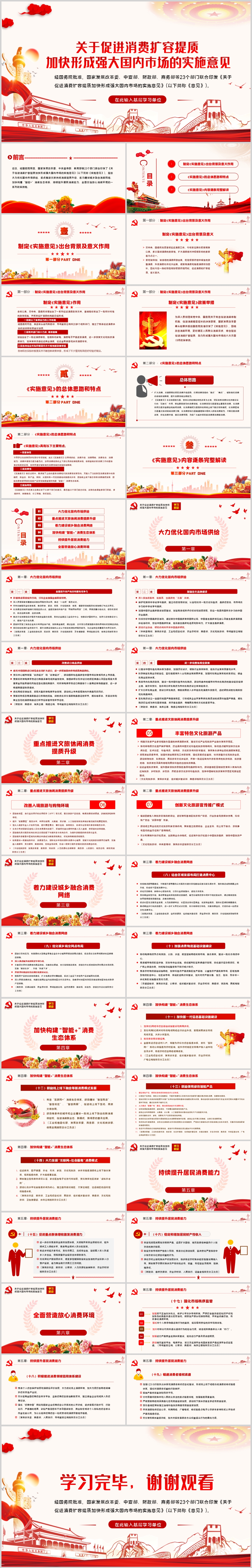 关于促进消费扩容提质加快形成强大国内市场的实施意见ppt(内含WORD演讲稿)