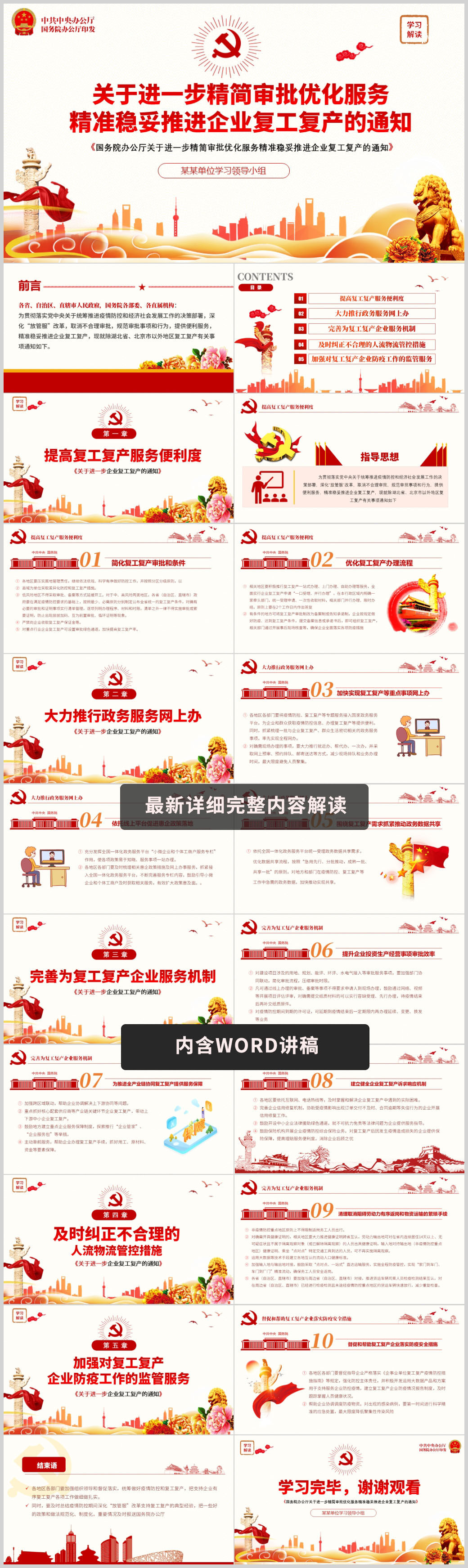 关于进一步精简审批优化服务精准稳妥推进企业复工复产的通知PPT(内含WORD演