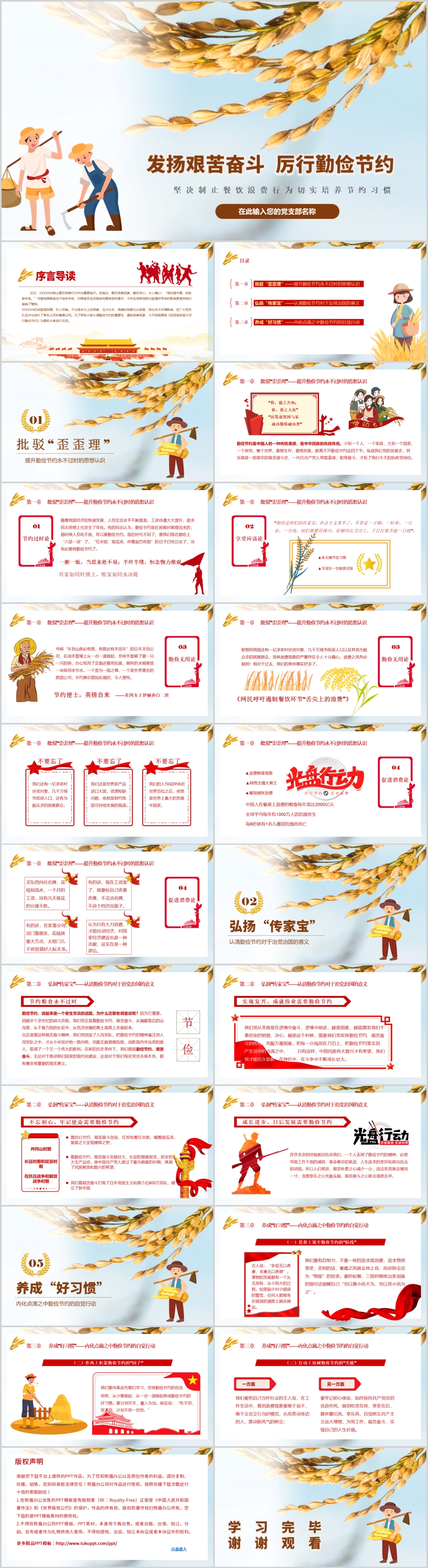 学习发扬艰苦奋斗厉行勤俭节约共产党员应有的道德品质党课PPT模板(内含WO