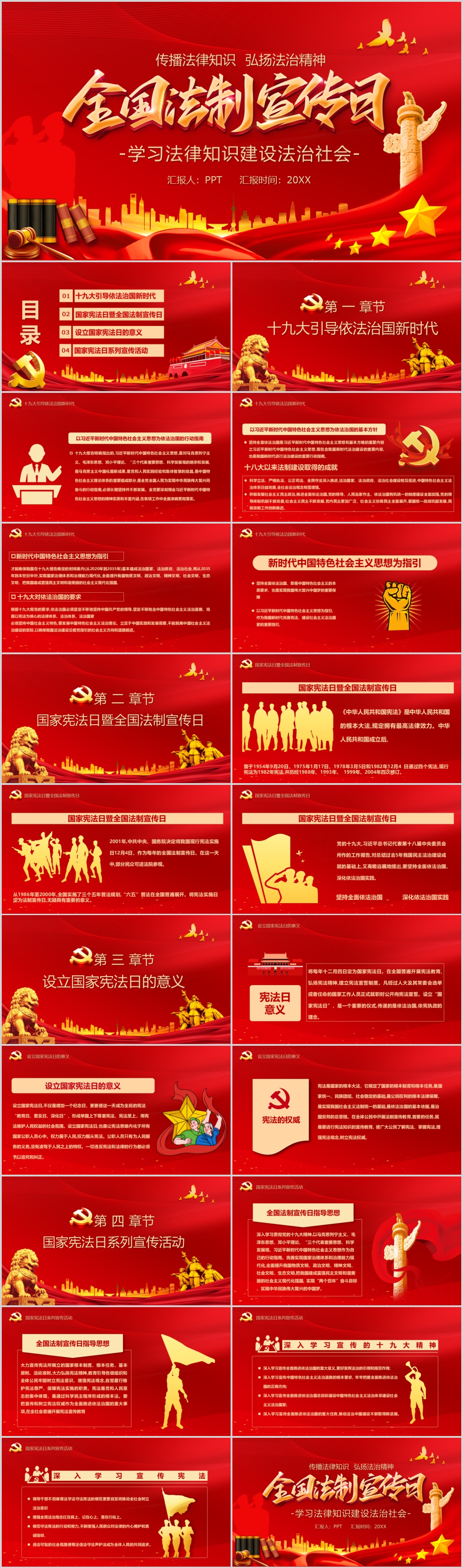 红色大气12.4日全国法制宣传日弘扬法治精神党课PPT模板