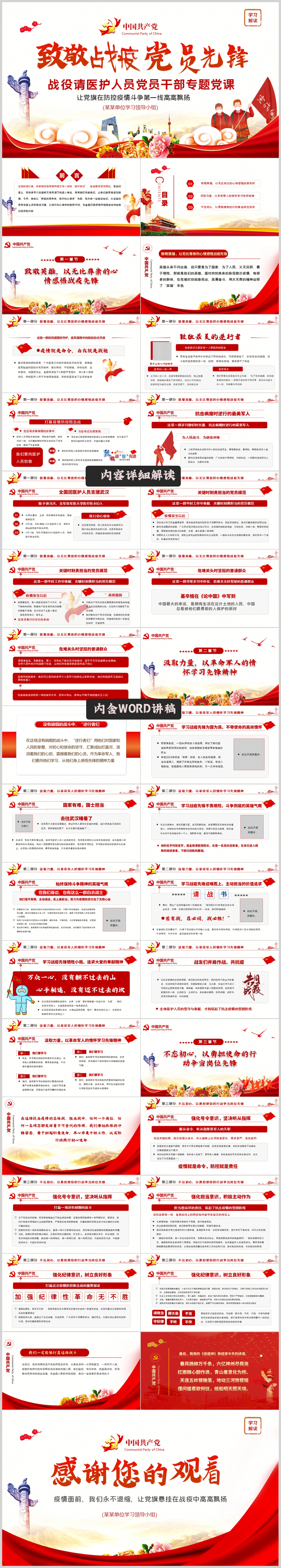 致敬战疫先锋践行初心使命医护人员党员干部专题党课PPT模板(内含WORD)