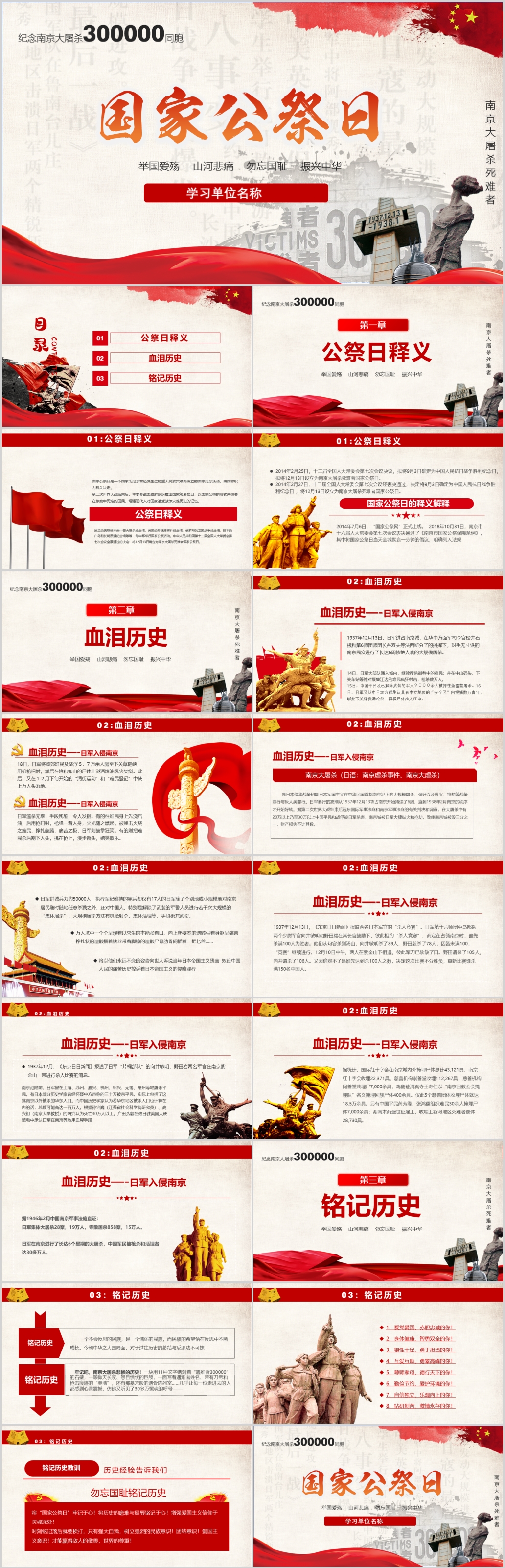 学习国家公祭日纪念南京大屠杀爱国教育主题班会党课党建PPT模板