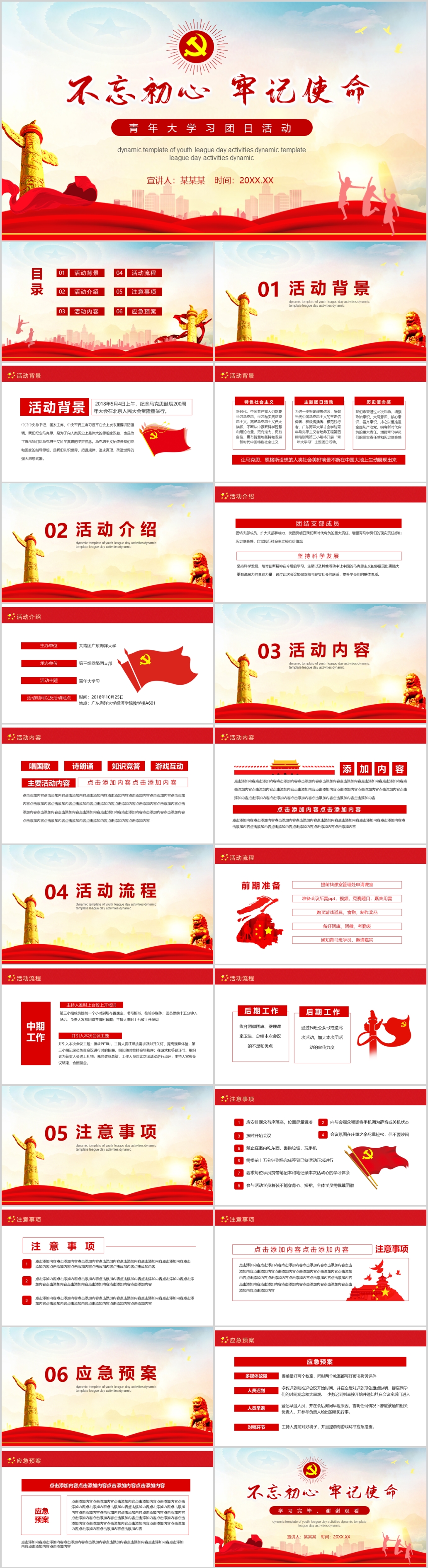 不忘初心共青团青年团大学习团日活动主题介绍通用PPT模板