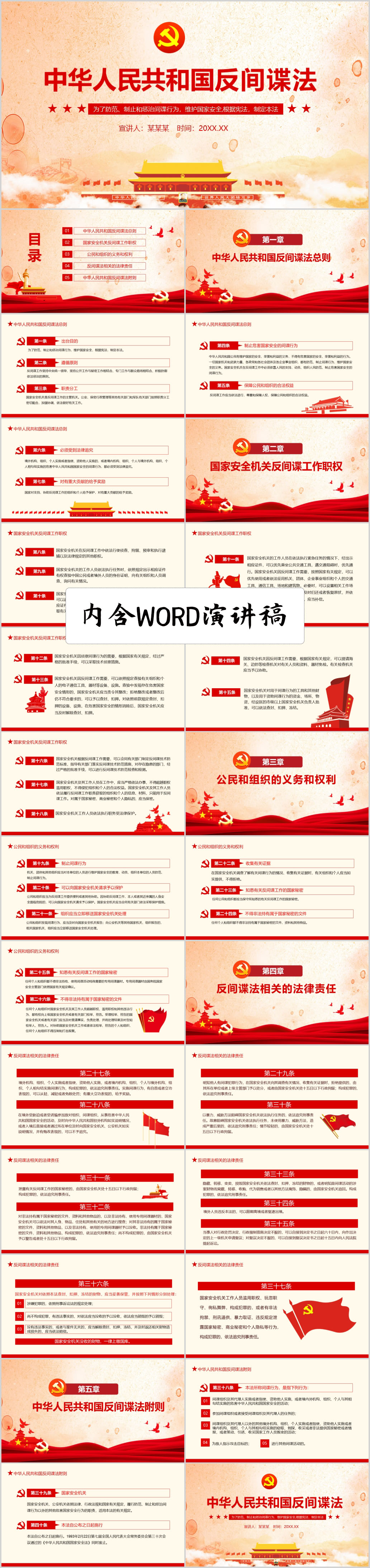 学习解读中华人民共和国反间谍法党课ppt模板(内含WORD演讲稿)