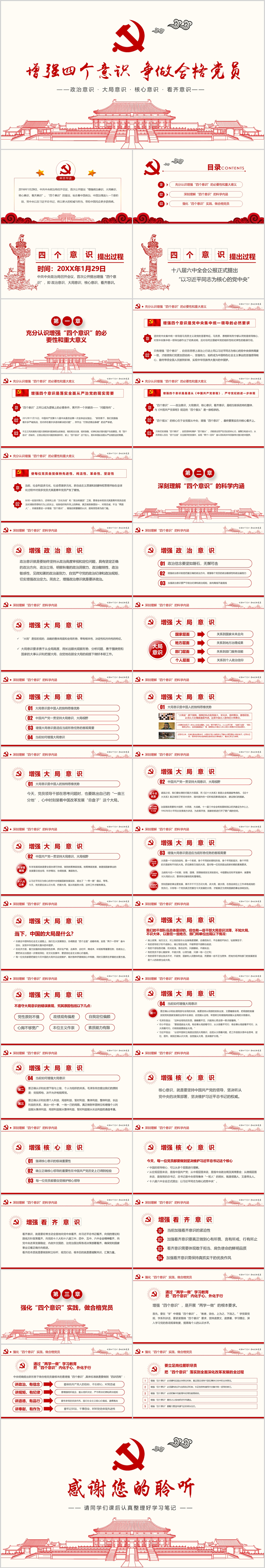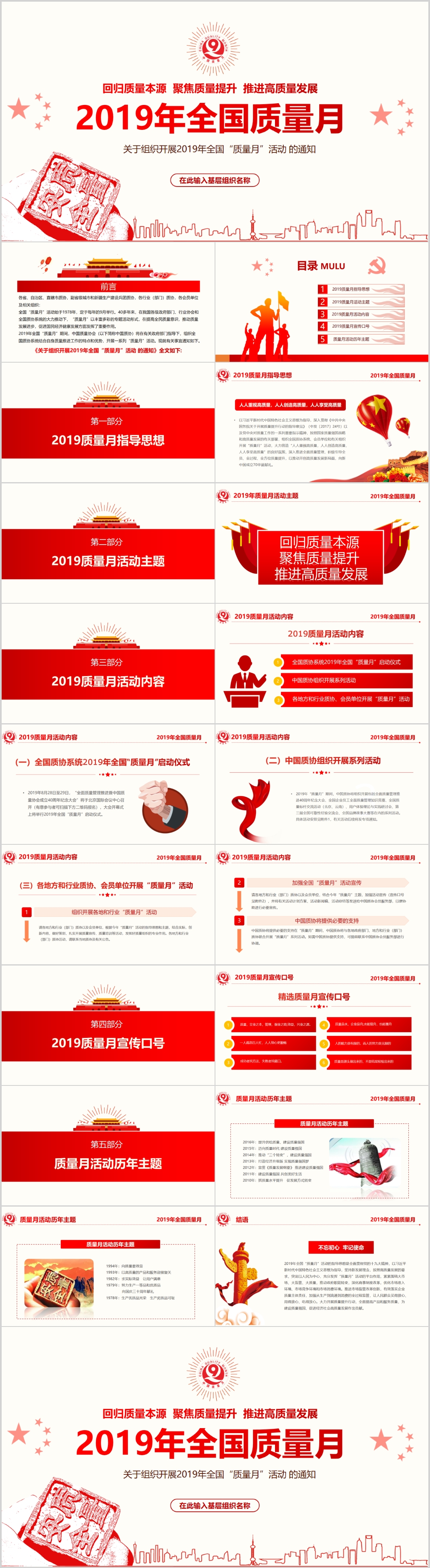红色党政风2019年全国质量月活动主题学习PPT模板