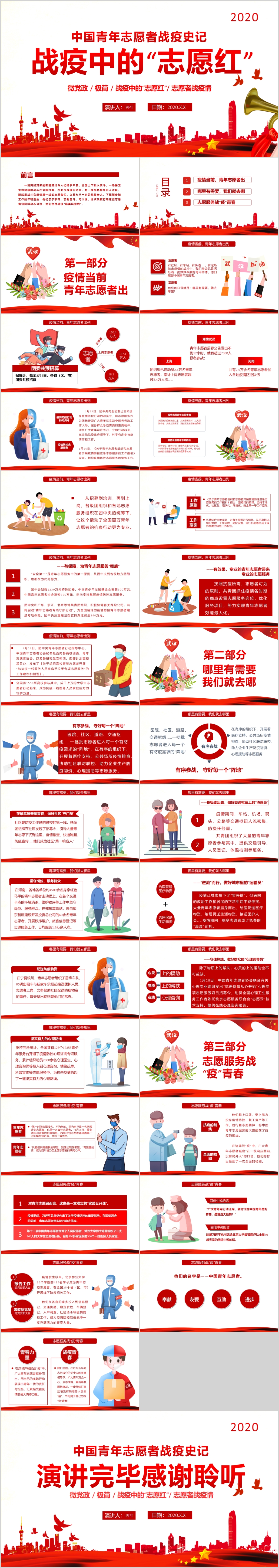 中国青年志愿者战疫史记战疫中的“志愿红”微党课ppt模板