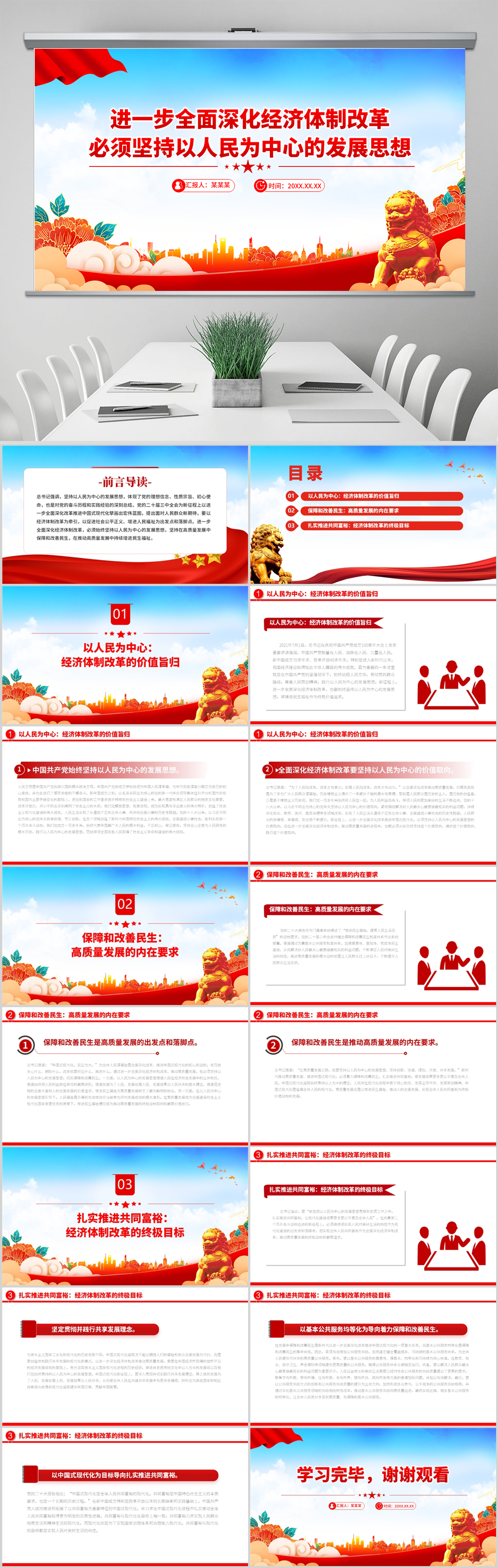 进一步全面深化经济体制改革必须坚持以人民为中心的发展思想党课PPT模板(内