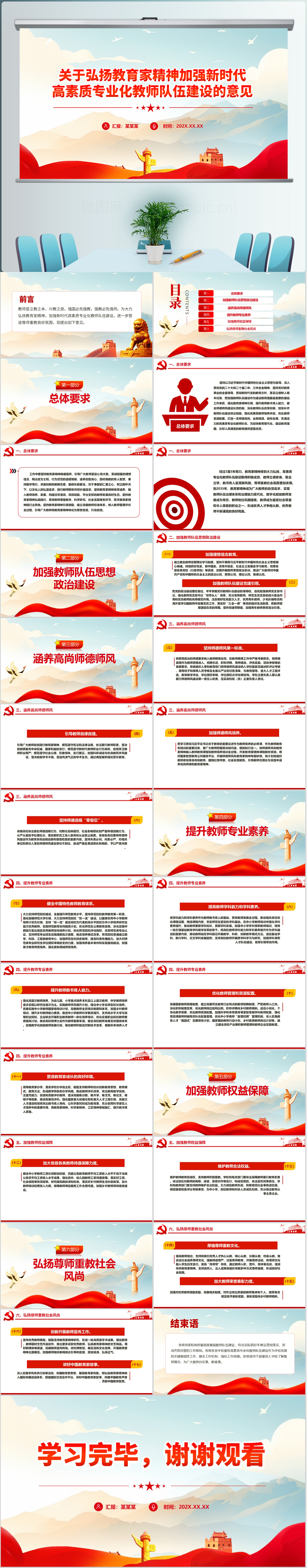 2024弘扬教育家精神加强新时代高素质专业化教师队伍建设党课PPT模板(内含W