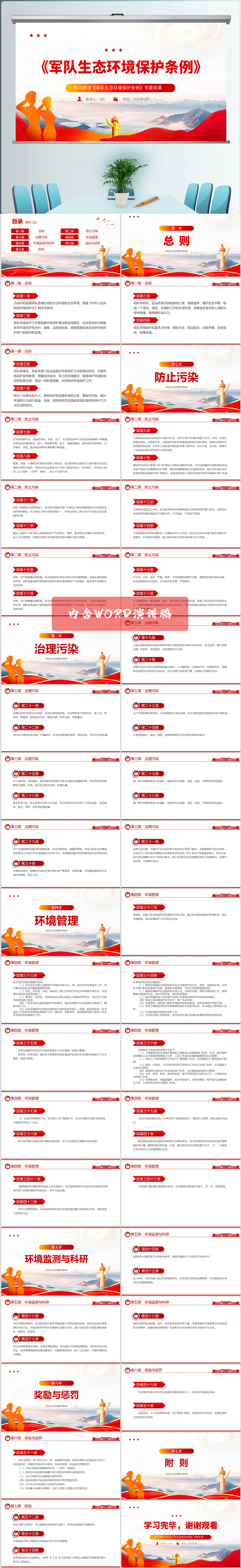 学习《军队生态环境保护条例》解读党课PPT模板(内含WORD演讲稿)