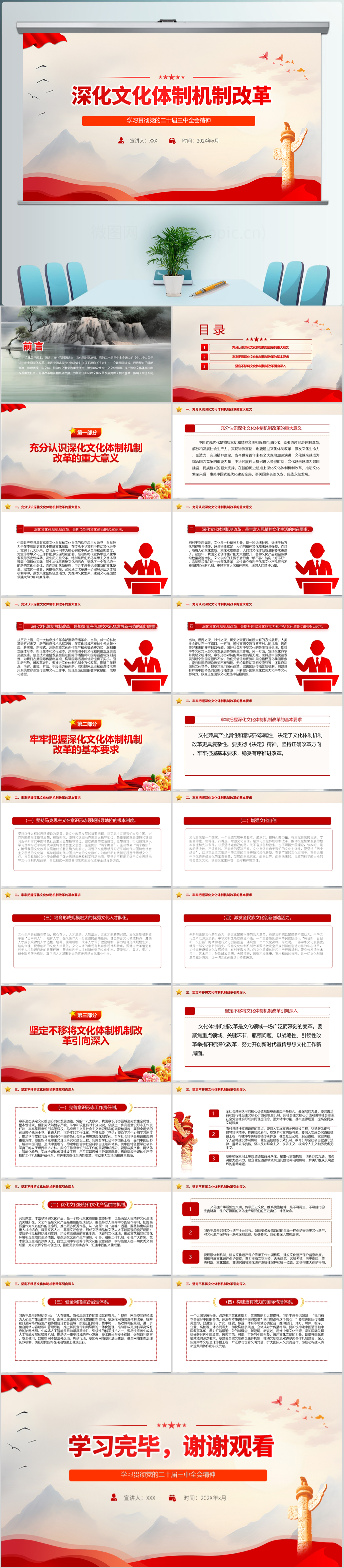 深化文化体制机制改革专题党课ppt模板