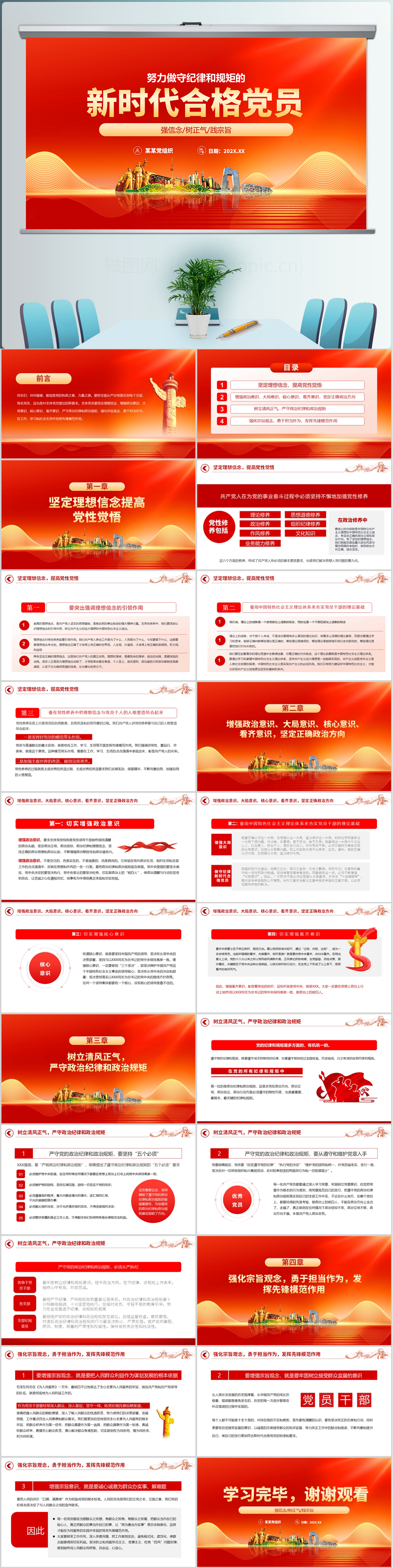 红色中国共产党不合格党员组织处置办法解读ppt模板(内含WORD演讲稿)