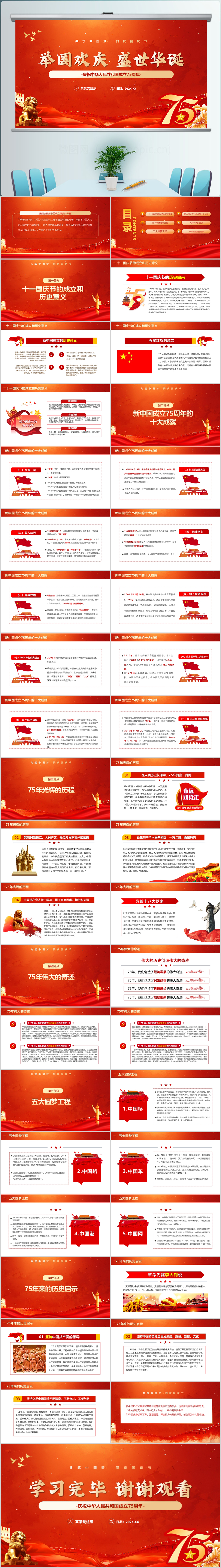 红色举国欢庆盛世华诞庆祝庆祝新中国成立75周年国庆节党课PPT模板
