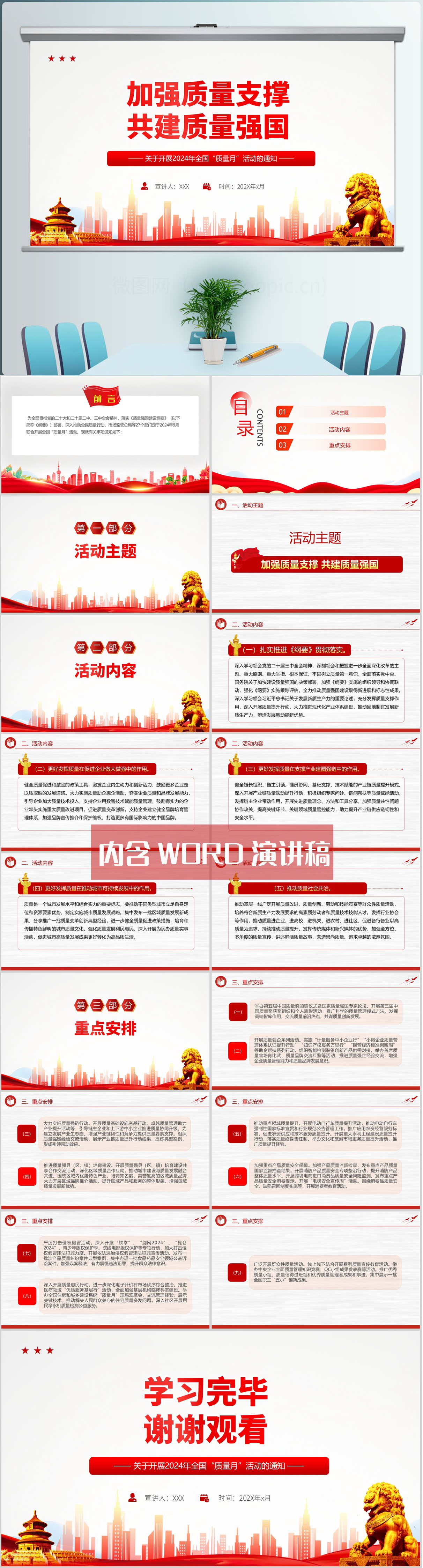 2024年加强质量支撑共建质量强国全国质量月课件ppt模板(内含WORD演讲稿)