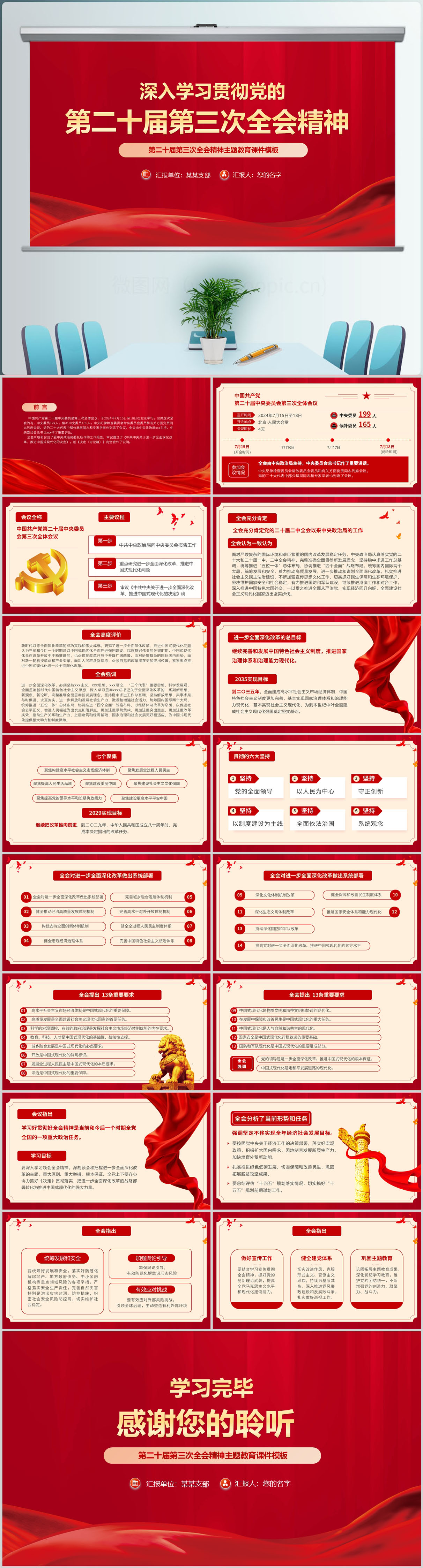 2024红色全面学习贯彻党的二十届三次全会精神ppt模板