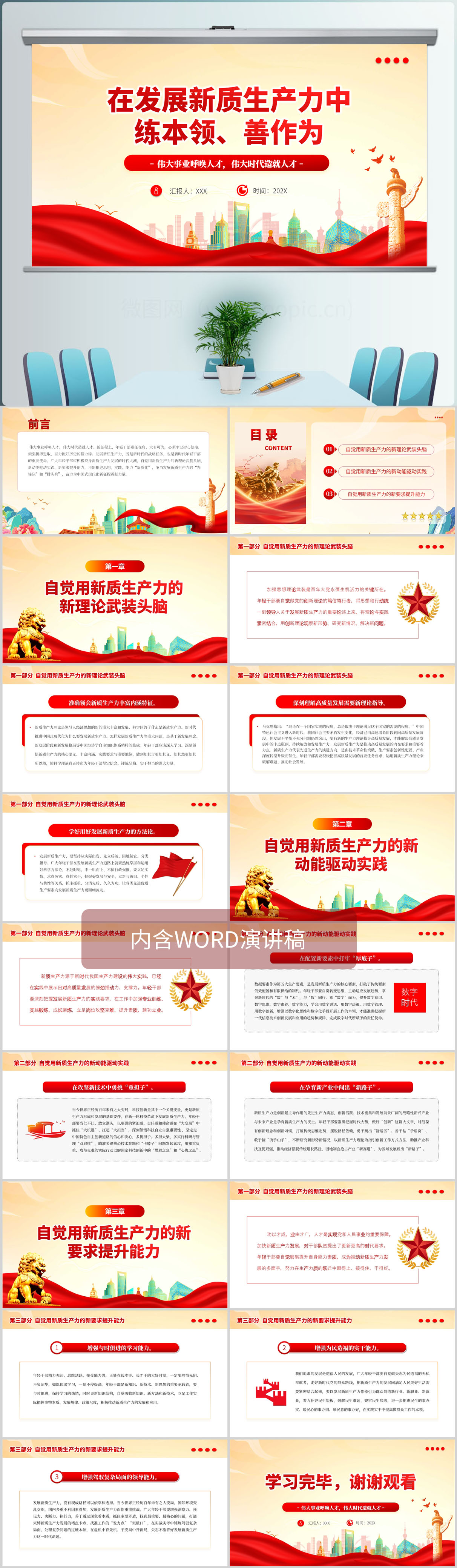学习新时代年轻干部在发展新质生产力中练本领善作为党课PPT模板(包含word演