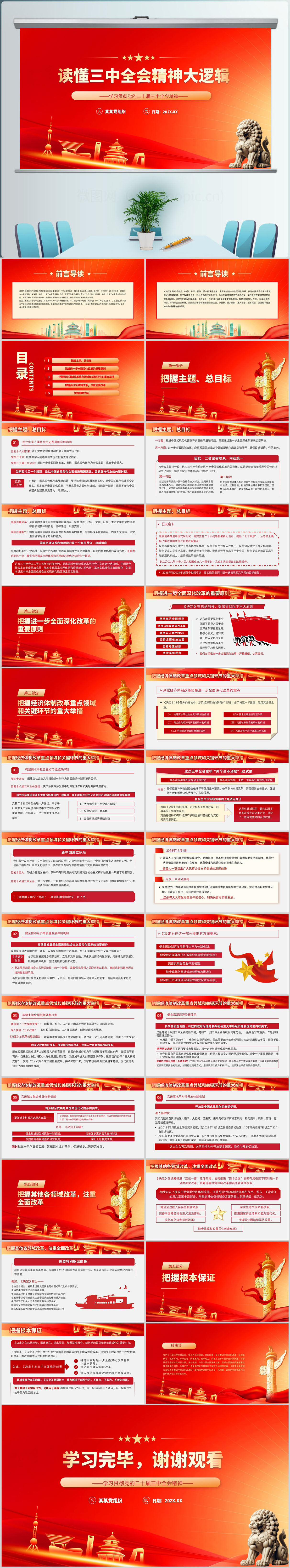 红色读懂二十届三中全会精神大逻辑学习解读党课ppt模板