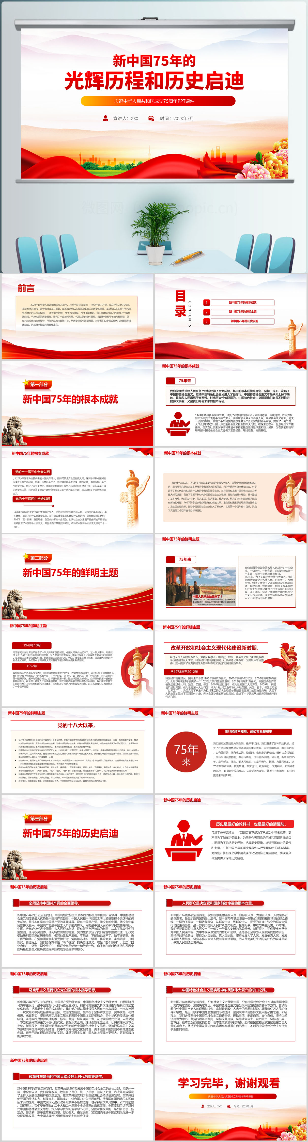 2024新中国75年的光辉历程和历史启迪党课ppt模板