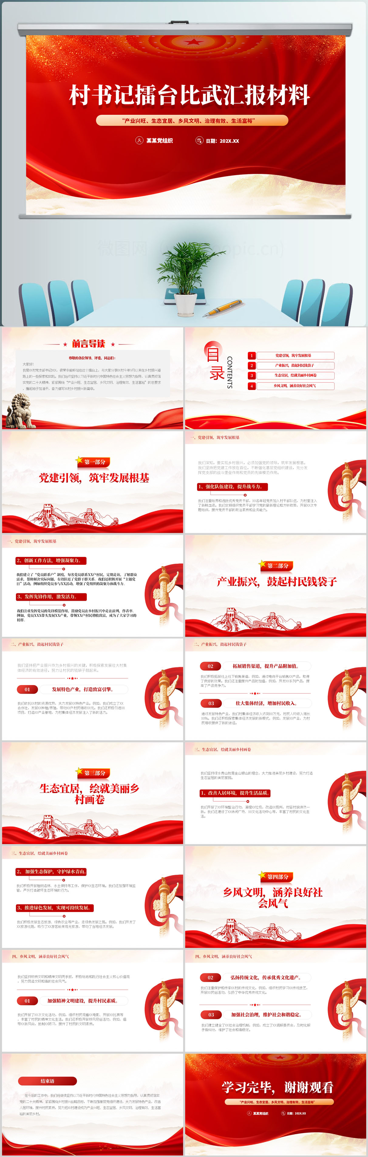 2024年村书记擂台比武汇报材料党课PPT模板