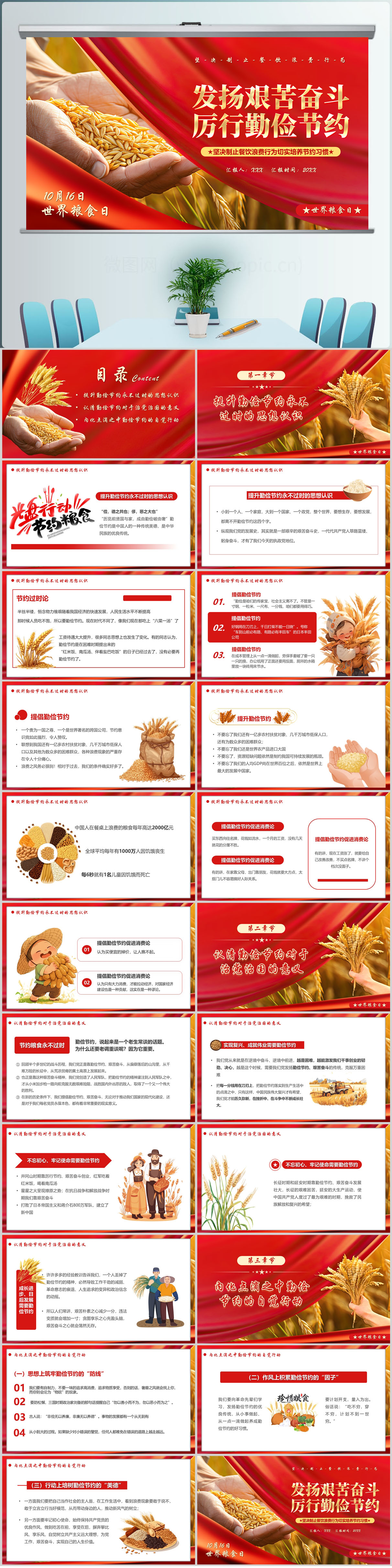 世界粮食日发扬艰苦奋斗厉行勤俭节约专题党课ppt模板