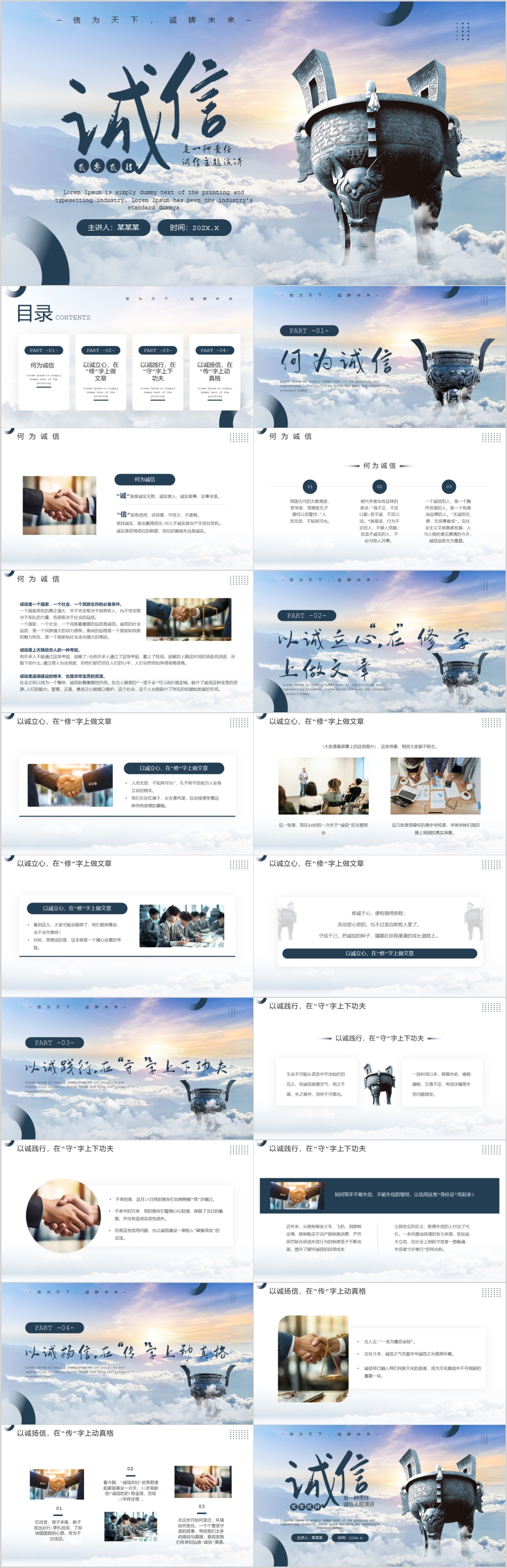 蓝色励志风诚信是一种责任主题演讲培训课件PPT模板