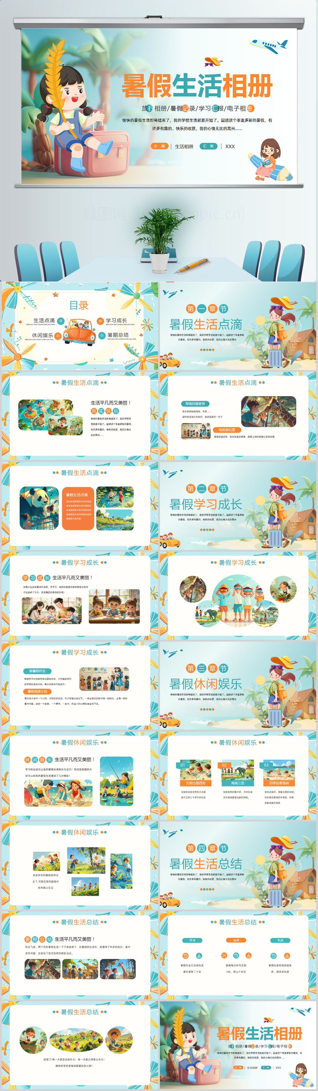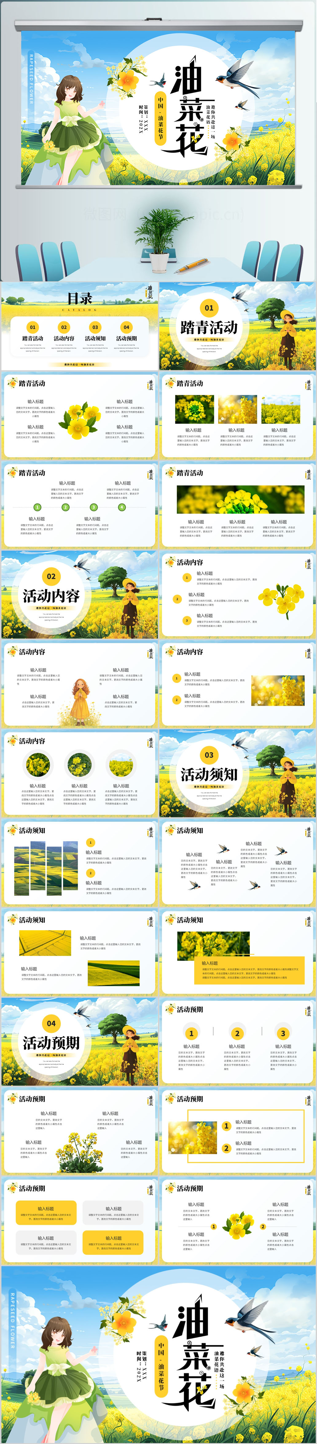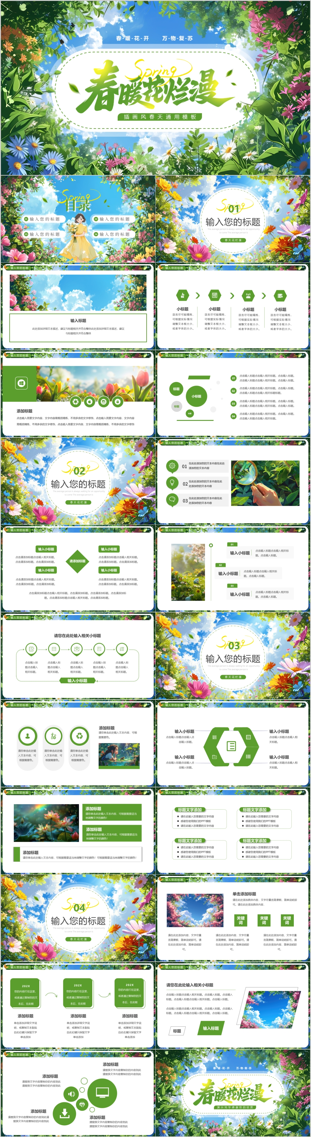 清新绿色春天来了春季春暖花开春游踏青通用ppt模板