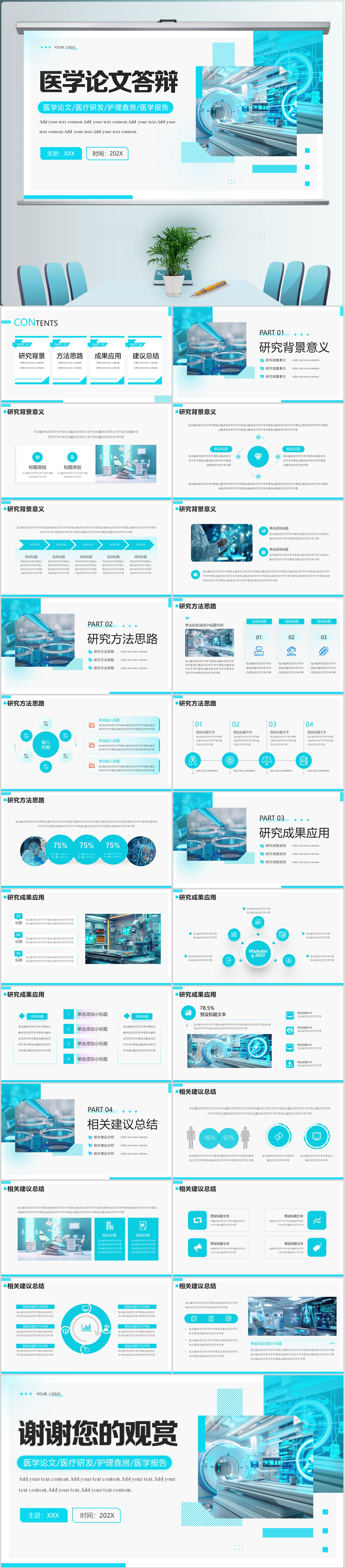 蓝色简约医学答辩医学论文医学开题报告PPT模板