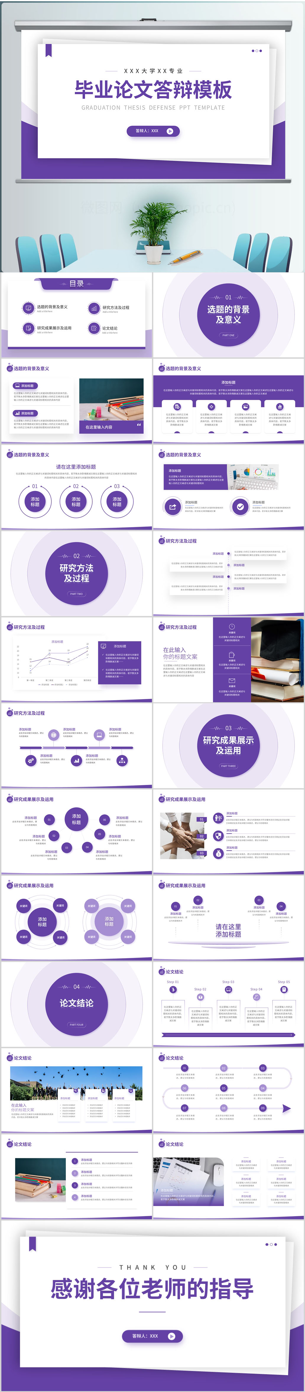 2024简约卡板紫色大气毕业论文答辩ppt模板