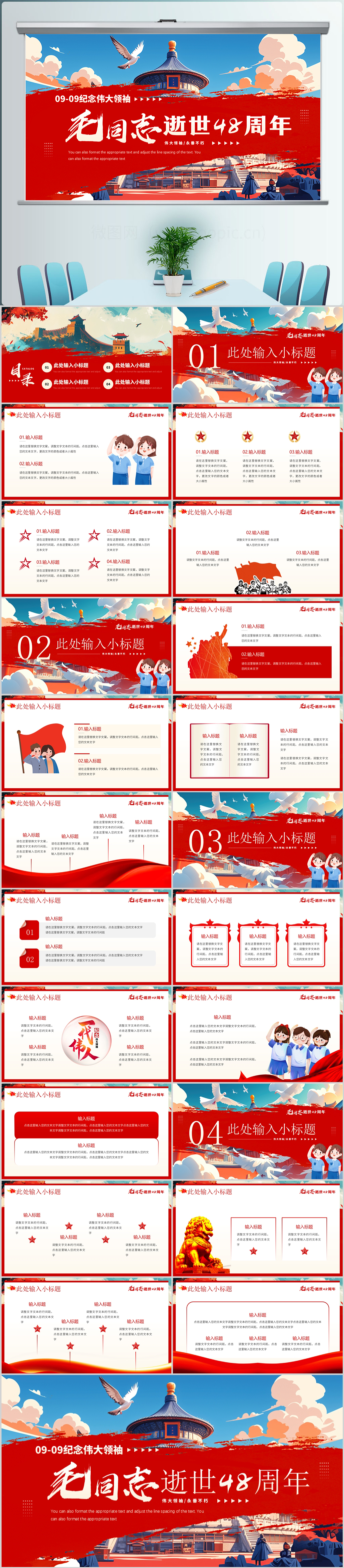 红色国潮风纪念毛同志逝世48周年通用介绍PPT模板