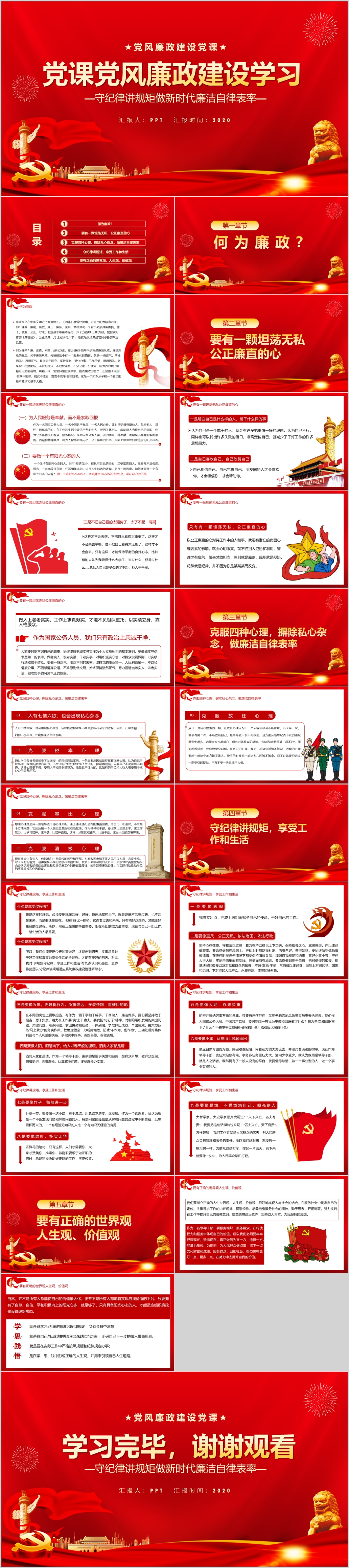 红色党政风我和我的祖国庆祝中华人民共和国70周年党课通用PPT模板