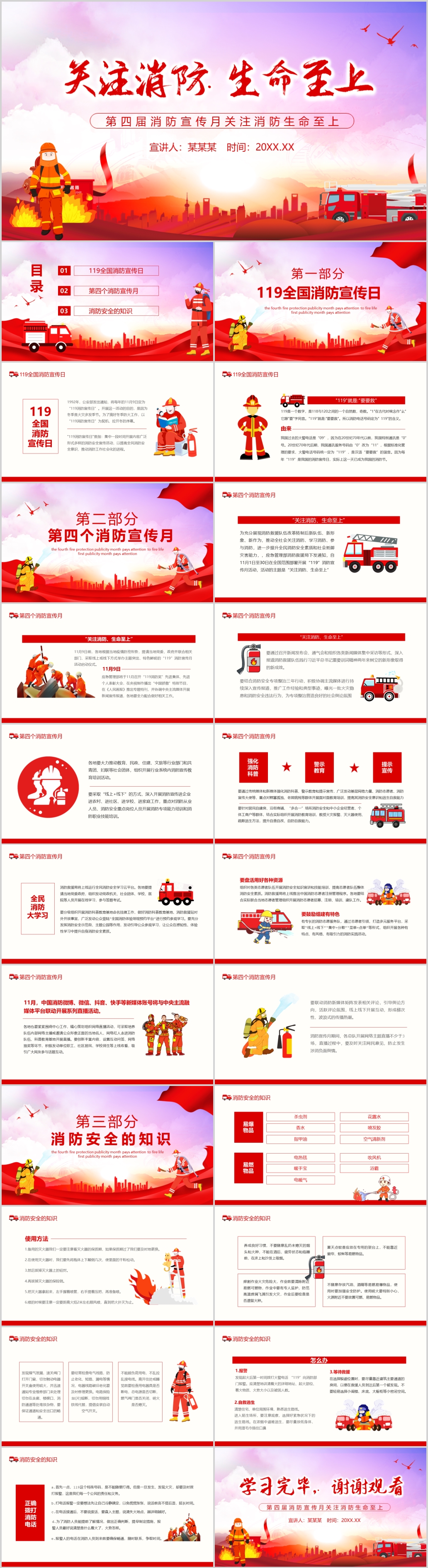 学习消防宣传月关注消防生命至上消防安全宣传日党课PPT模板