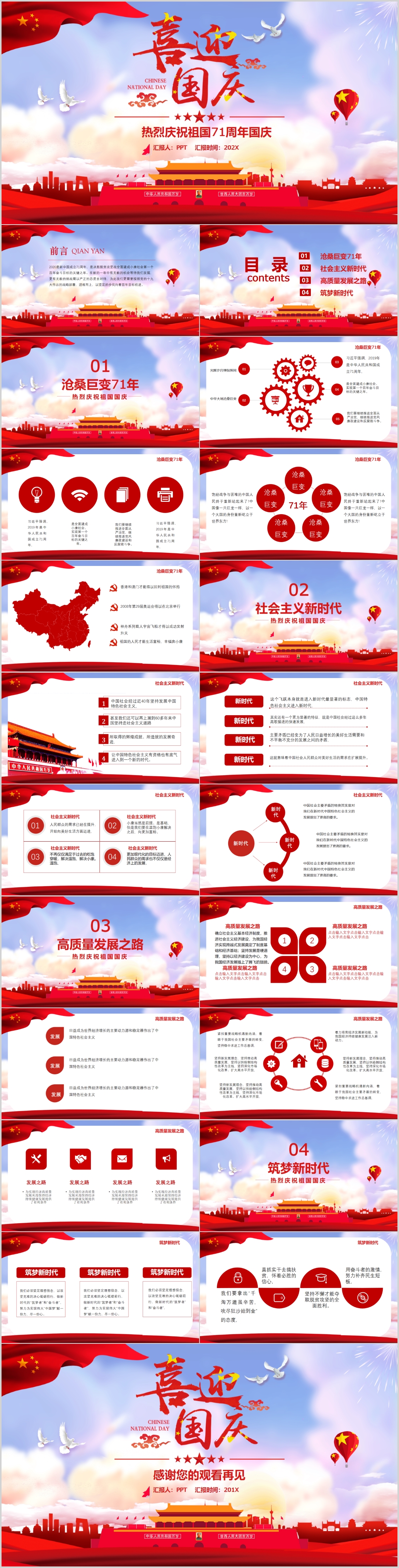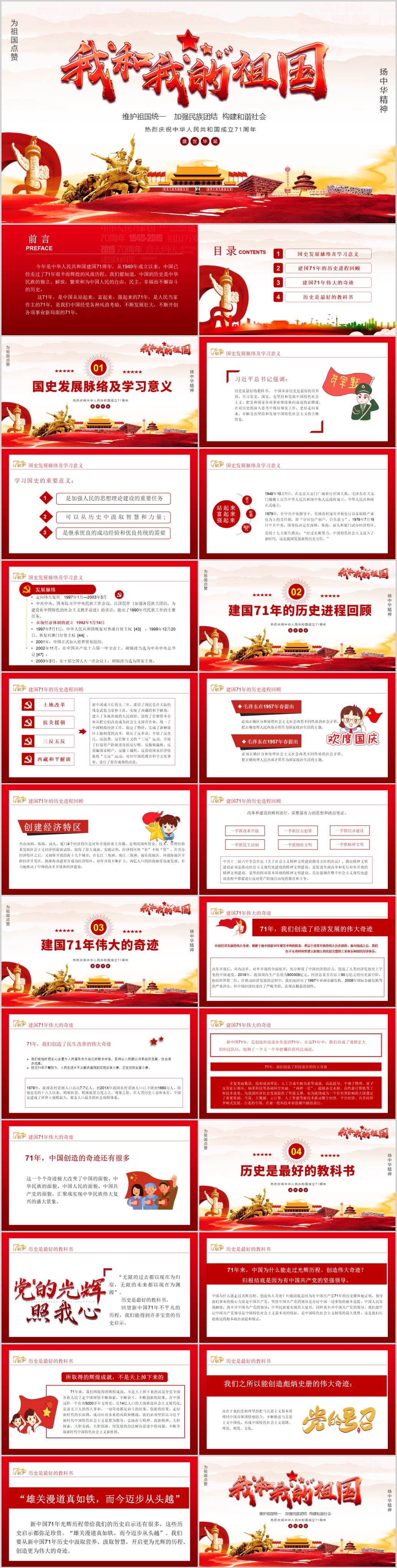 国庆新中国成立71周年新中国奋进新时代党政党建PPT