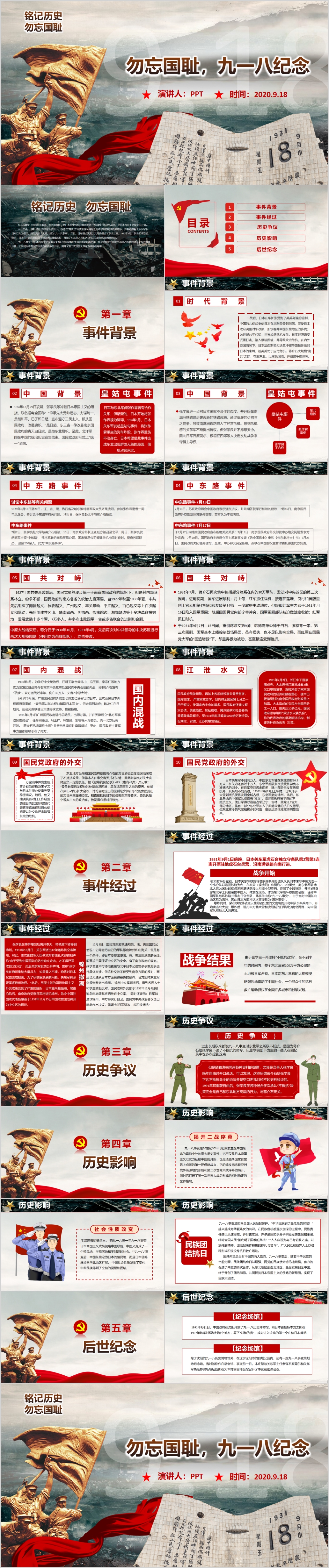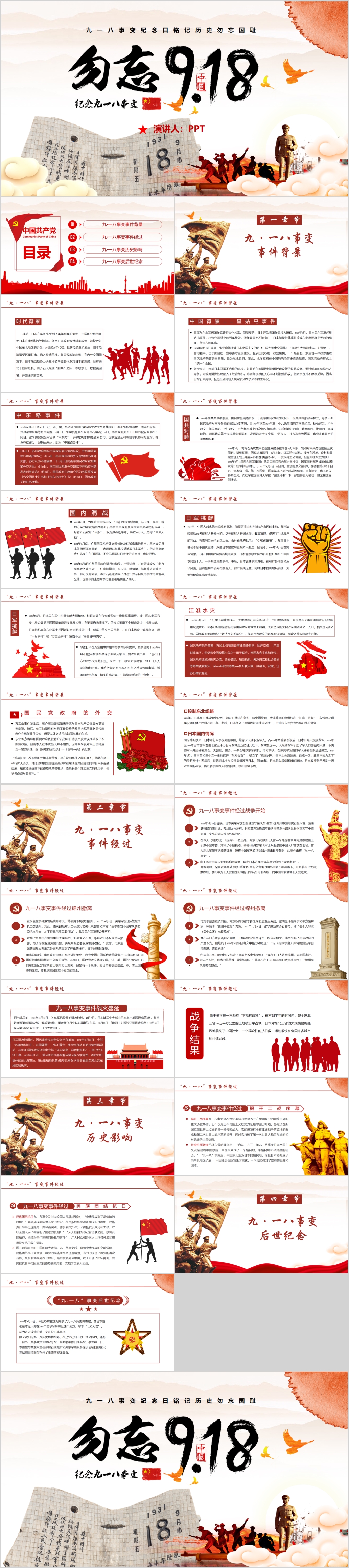 纪念九一八事变勿忘国耻纪念日PPT模板