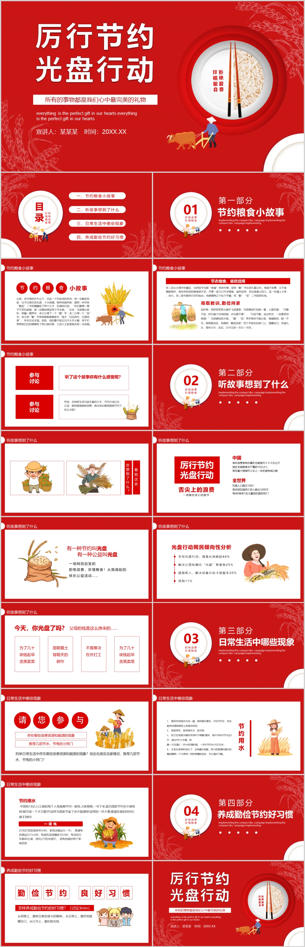 红色厉行节约光盘行动拒绝浪费勤俭节约反对浪费粮食文明ppt模板