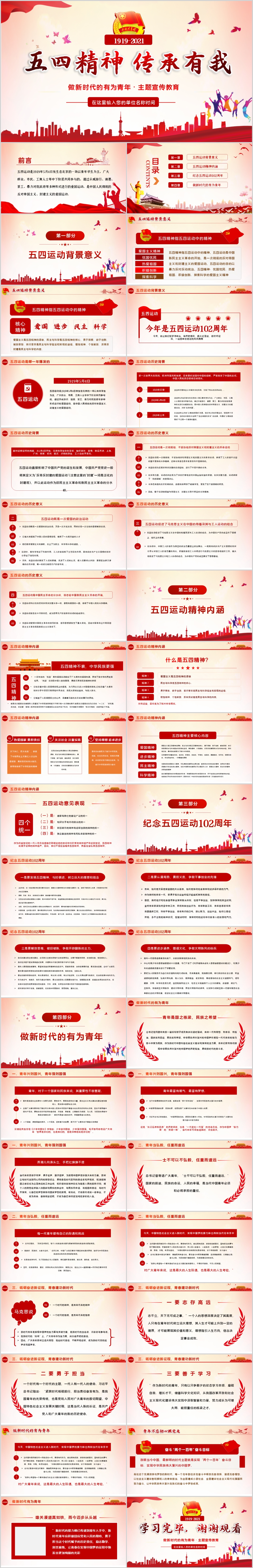 做新时代的有为青年弘扬五四精神102周年传承有我团课PPT模板