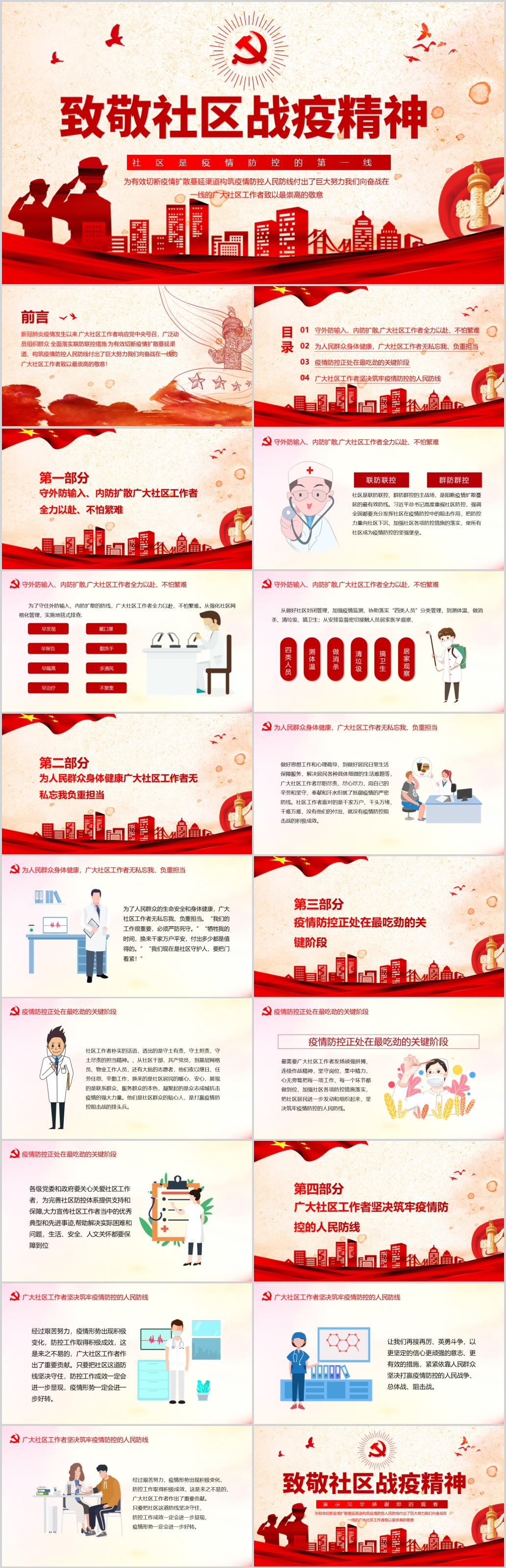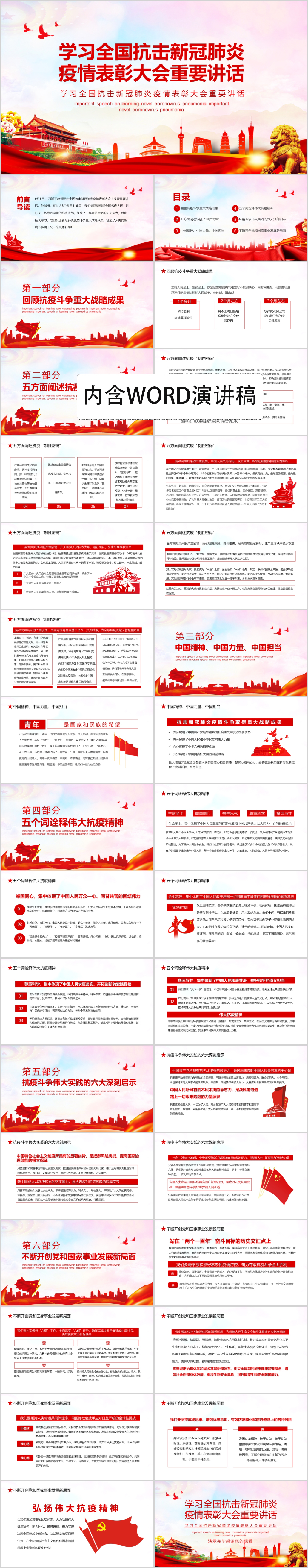 中国战疫精神抗击疫情新型冠状病毒肺炎专题党课PPT模板(内含WORD演讲稿)