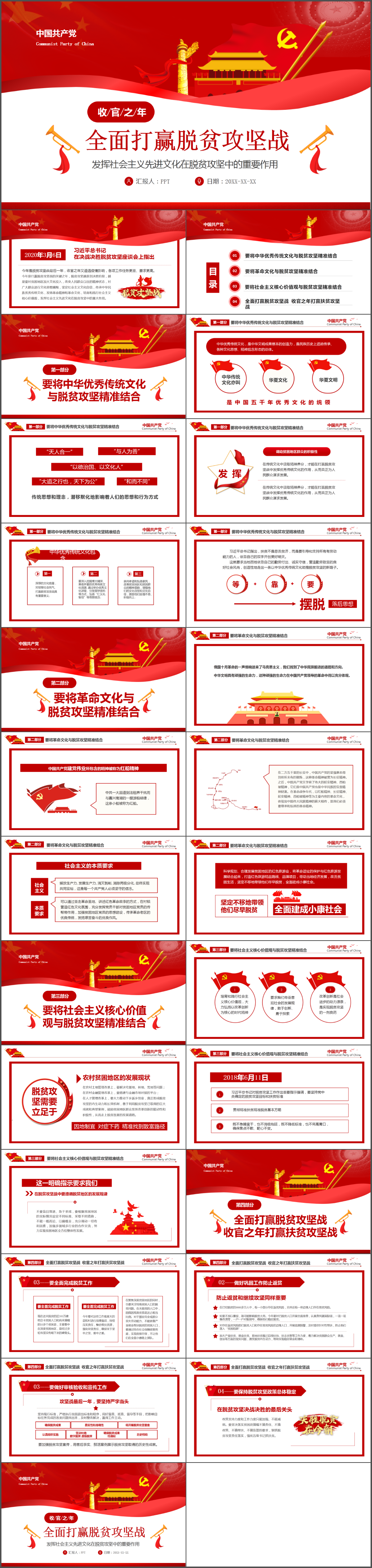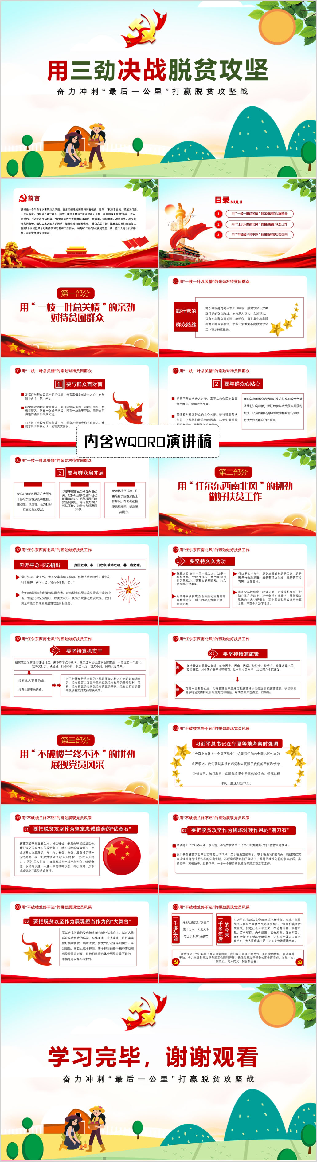 学习用三劲决战脱贫攻坚脱贫攻坚战党课PPT模板(内含WORD演讲稿)