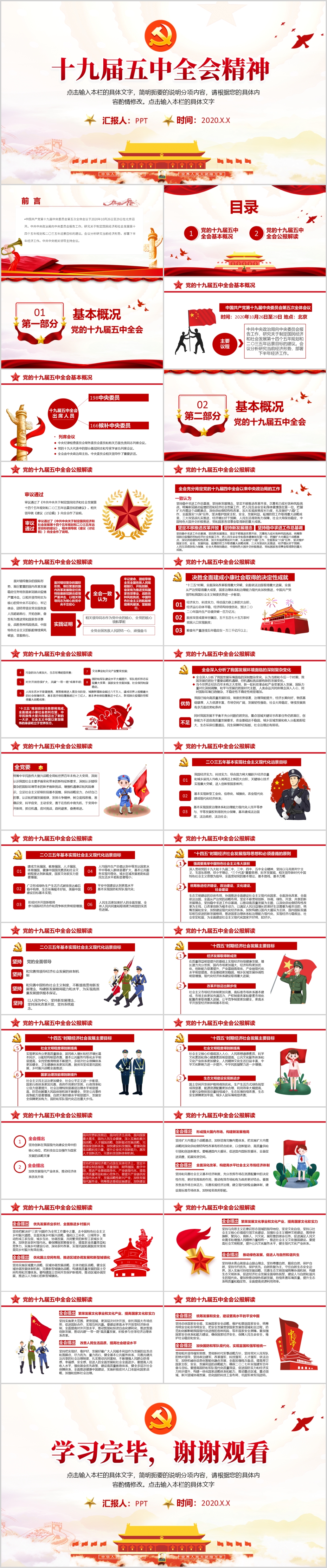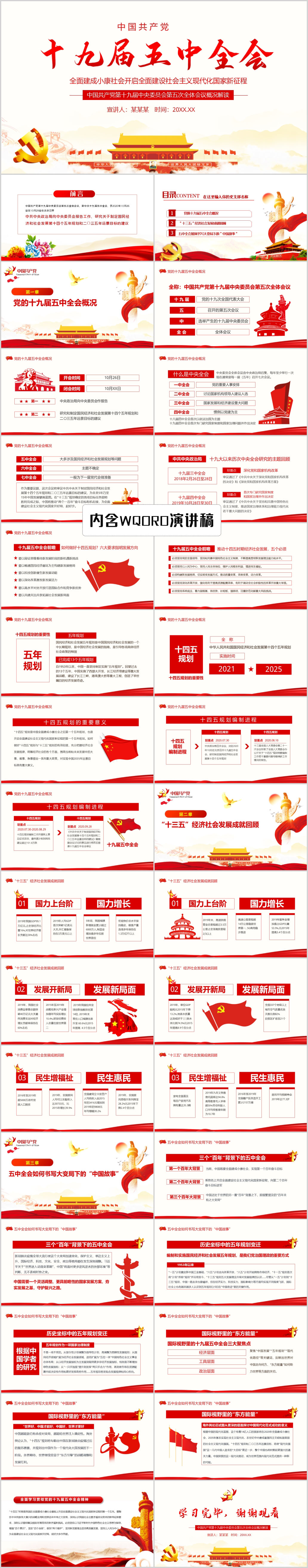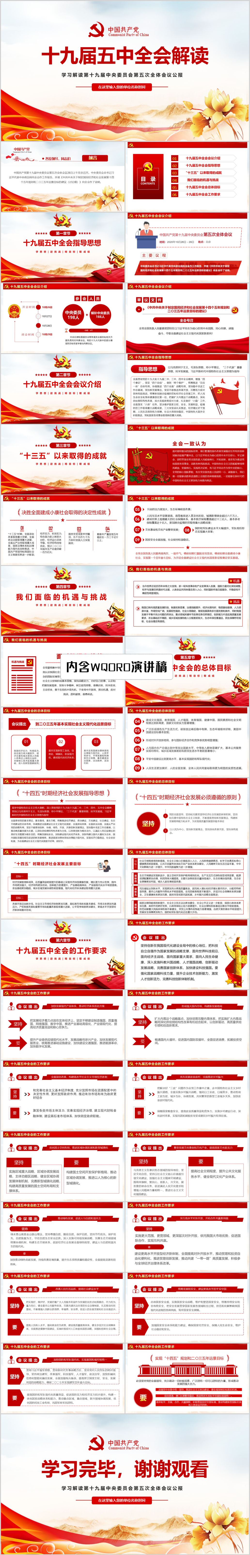 学习解读十九届五中全会会议公报党课PPT模板(内含WORD演讲稿)