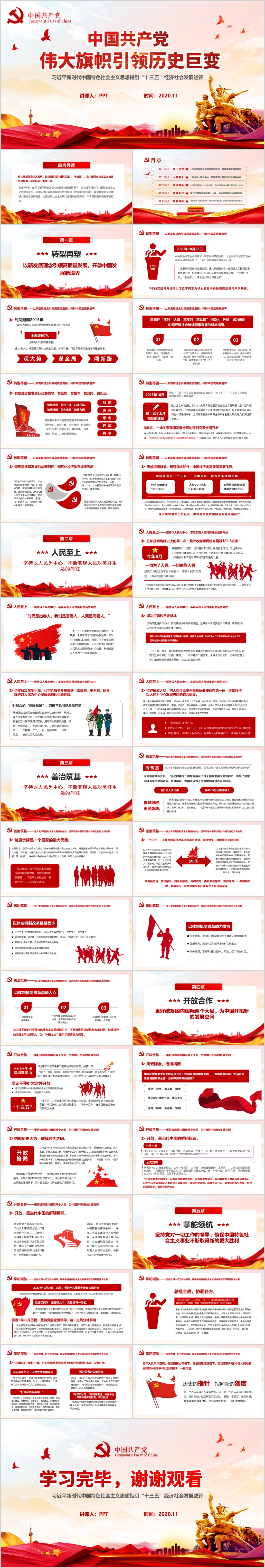 中国共产党十九届五中全会伟大旗帜引领历史巨变PPT模版