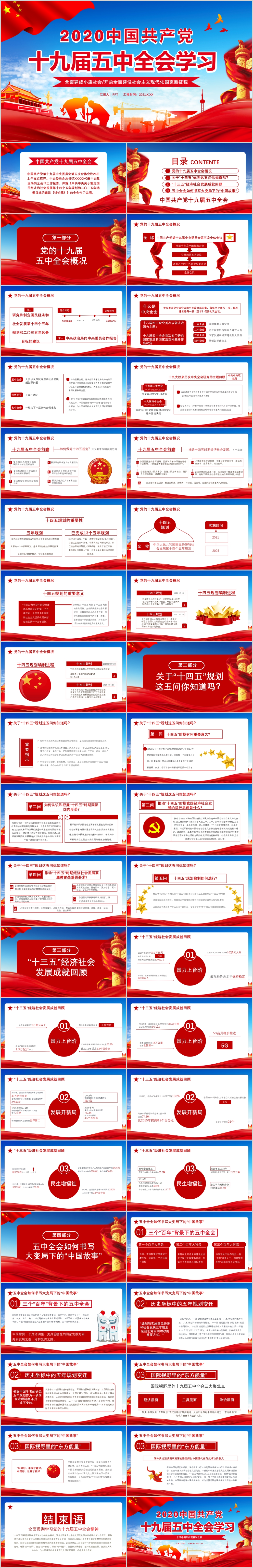 学习贯彻十九届五中精神解读十四五规划党课PPT模板(内含WORD演讲稿)