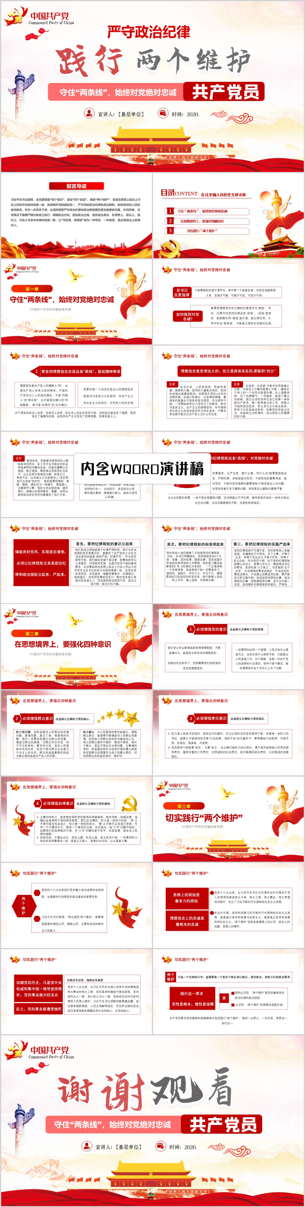 学习解读严守政治纪律践行两个维护党课PPT模板(内含WORD演讲稿)