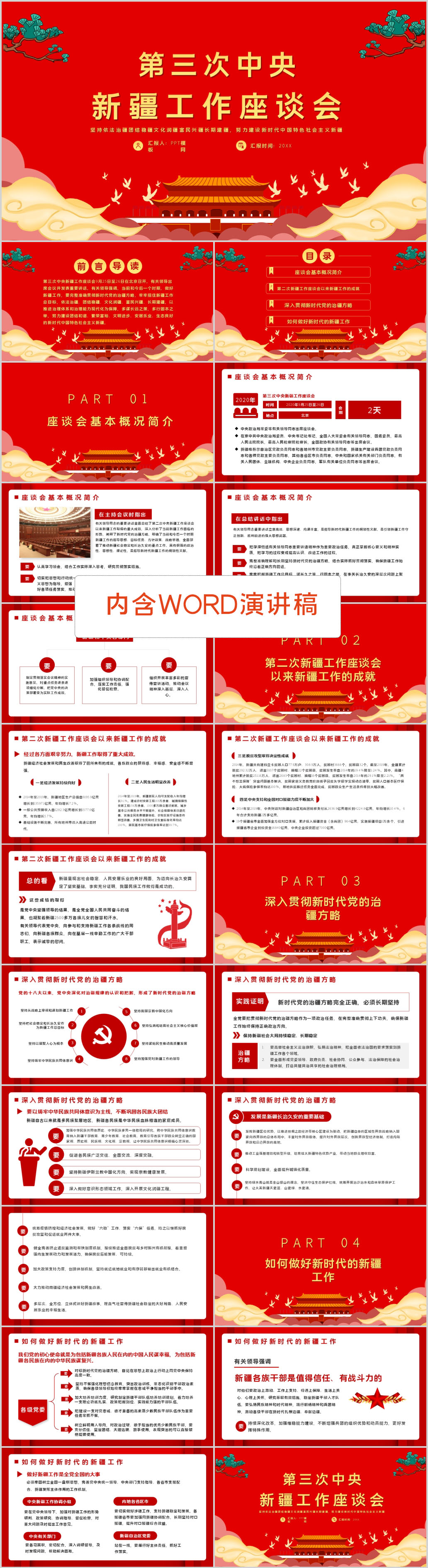 学习第三次中央新疆工作座谈会重要讲话党课PPT模板(内含WORD演讲稿)