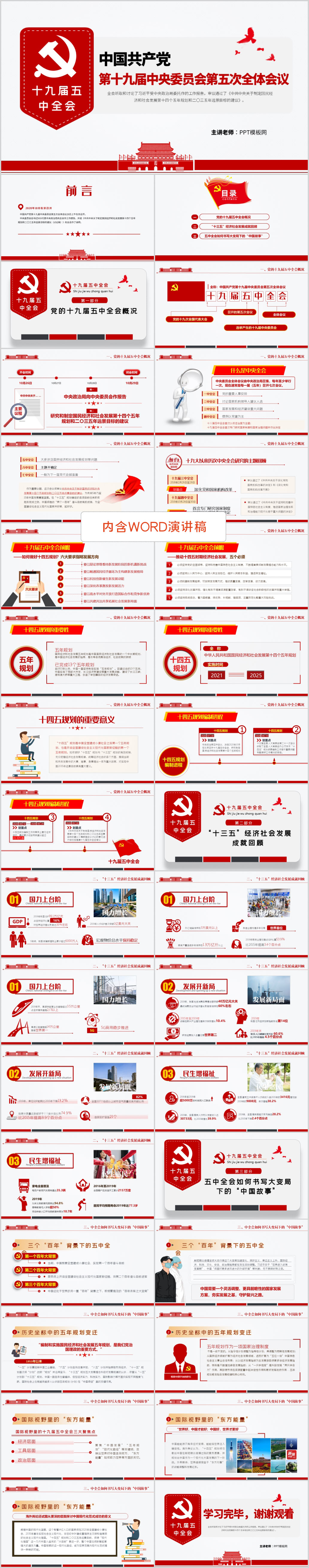 十九届五中全会十四五规划和2035年远景目标的建议解读党课PPT模板(内含WORD演