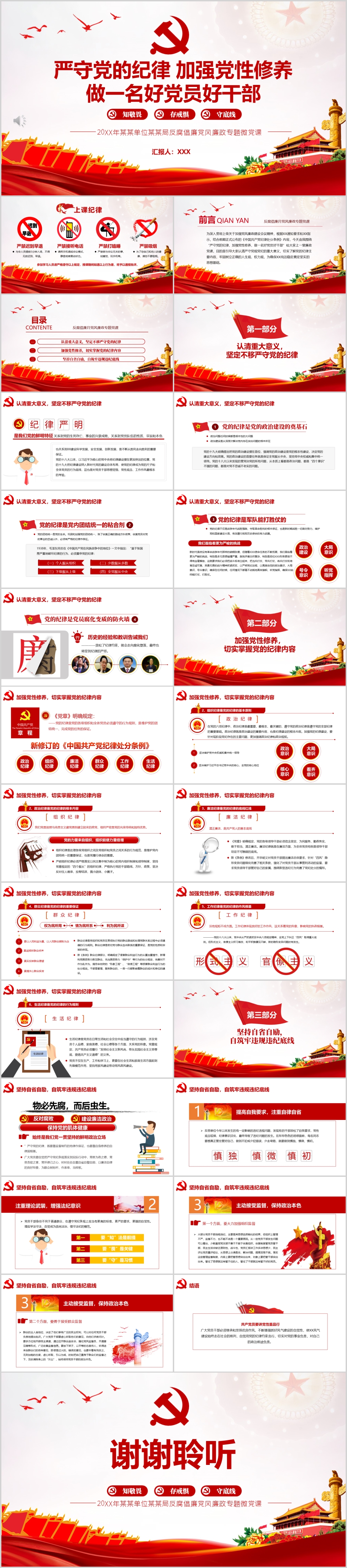 严守党的纪律加强党性修养做一名好党员好干部党课PPT模板
